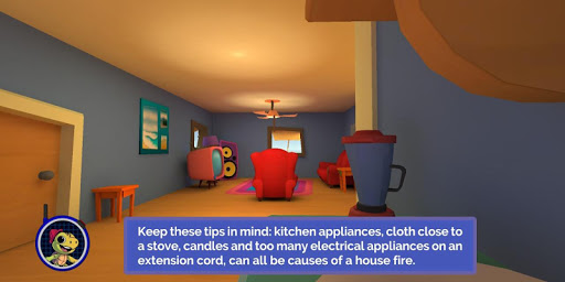 The game is presented in the form of an animated room where the player participates in a school or home hazard hunt. This allows the player to conduct the correct mitigating activities during scenarios such as: