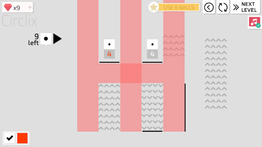 Draw a line by dragging your finger & release it to make a path for the Circlix ball to reach the square targets. Some levels have multiple targets with different color ball requirements.