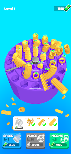 แตะสำหรับการตัดพาสต้าประเภทต่างๆและปลูกเครื่องของคุณ!เล่นเกมง่ายและเสพติด!