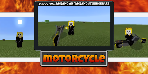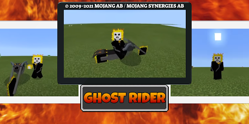 Ghost rider mod จะอัปเดตชุดเกราะเพชรและทำให้เป็นสีดำในสไตล์ของ Ghost Rider แทนที่จะเป็นวัตถุหัวจะเป็นหน้ากากที่ถูกไฟไหม้ดูเหมือนหัวกะโหลกที่ลุกเป็นไฟ หากคุณใส่ทุกอย่างที่เราเพิ่มเข้าไปคุณจะดูเหมือนโครงกระดูกที่ไหม้ไฟในชุดหนังสีดำ แต่เพื่อให้ดูสมบูรณ์จักรยานไม่เพียงพอสำหรับคุณ เราได้เพิ่มรถมอเตอร์ไซค์ที่คุณสามารถขี่และบินผ่านสิ่งมีชีวิตทั้งหมดของโลกที่สวยงาม ออกผจญภัยสำรวจสภาพแวดล้อมทั้งหมด เพิ่มสกินโกสต์ไรเดอร์ไฟสีน้ำเงินและสีม่วง มีรูปลักษณ์มากมายที่สามารถสร้างความหวาดกลัวให้กับผู้ประสงค์ร้ายทั้งหมดได้ ส่วนเสริมจะไม่เพิ่มม็อบที่ไม่เป็นมิตรใด ๆ คุณสามารถเรียกมอเตอร์ไซค์หลายคันสำหรับตัวคุณเองและเพื่อนของคุณ