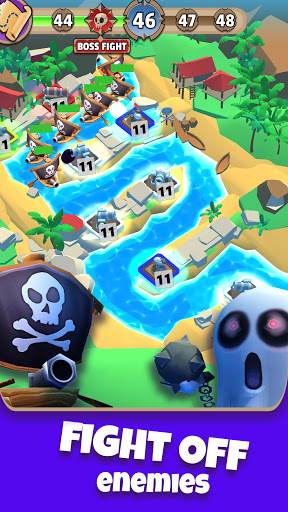 Pirates Merge TD มีการเล่นเกมที่รวดเร็วน่าตื่นเต้นและน่าติดตาม จัดการหอคอยของคุณและปกป้องสมบัติโจรสลัดของคุณจากศัตรูของคุณ!
