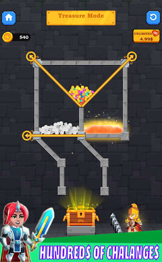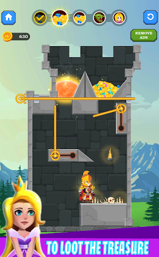 Help the hero rescue the princess and win the treasure. Pull the sticks to make a safe path to the princess. Pull the sticks to kill the spider, to save the princess, to get the treasure. You will become a rich hero in this latest rescue game.