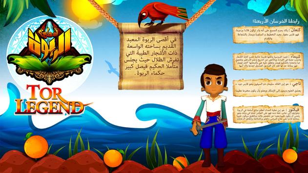 "Tor Legend" is Arabic Historical story, it is 3D side scrolling infinite runner game, in which you control the hero "Kana'an" who try to escape then back again later to protect his territory that is displayed through the myth of oranges, the major fruit in Tor, which converts in the hands of the owners of the land only to an incendiary weapon more powerful than all the weapons of traditional and non-traditional , a weapon which is owned by the children, the heroes of story in the second version or what is called "The League of the Four Knights" Kana'an, Shaima, Naji and Victor, in the face of hordes of evil.