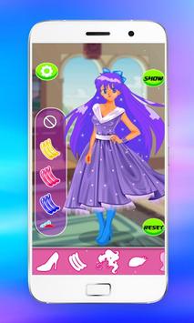 Anime Dress Up has dresses, shoes, bags, eye color, skin color, hair styles, hats, hair ornaments, jewelry, gloves,glasses, and many other accessories.