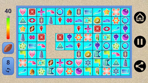 Remove 2 cards with the same design that you can connect. The goal is to cleanup the board. If you are stuck, you can shuffle the cards.