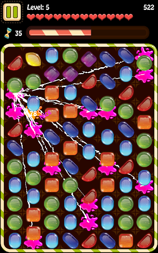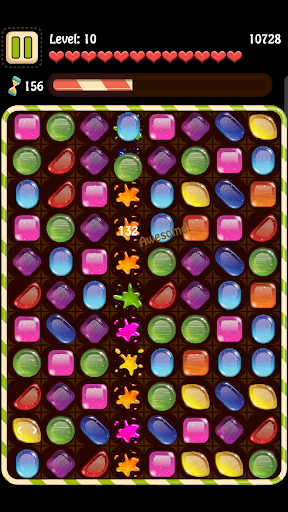 Well, suffer no more! This game offers you a classic match-3 back to the roots kind of gameplay. Match the tasty looking candies in rows and columns of 3 or more, combine them with explosive bonuses and get extra scores!