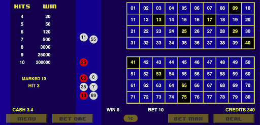 - เลือกตัวเลข 1 ถึง 20 หมายเลขจาก 80 หมายเลขและดูว่าคุณจับคู่กับเกม Keno ด้วยการเล่นเกมที่เรียบง่าย