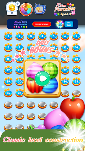 Match 3 or more fruits, use boosters properly and solve difficult puzzles! Break jewels and collect jewels in countless levels. Guaranteed unstoppable fun!