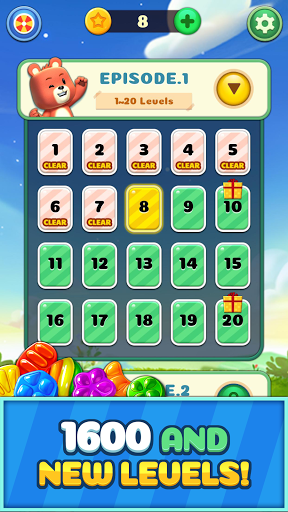 จับคู่ลูกอม 3 หรือมากกว่าที่มีรูปร่างเดียวกันเพื่อสร้างขนมพิเศษที่หลากหลาย