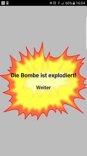 Es gibt verschiedene Kategorien, mit verschiedenen Aufgaben. Einer nach dem anderen löst die Aufgabe. Aber Achtung: Alle zusammen haben nur eine bestimmte Zeit. Und Niemand weiß, wann diese aufhört. Und der bei dem die Zeit zu Ende ist und bei dem die Bombe explodiert, hat die Runde verloren. Wer am Ende am wenigsten verloren hat, gewinnt.