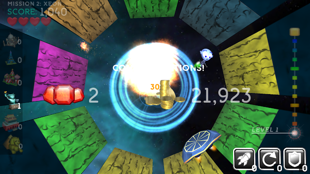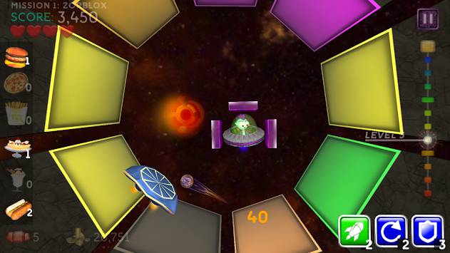 Aliens attacked planet earth and have taken our most precious belongings such as our smart-phones, school buses, firetrucks, cake, snacks and even our cows! What’s even more strange is that in order to win our stuff back you have to bonk the alien ships with a bouncing ball around in a colorful rotating world!
