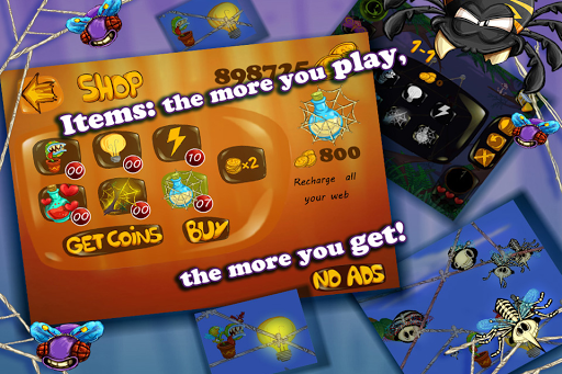 Different items to help you: golden web, web recharger, electric shock and potion
