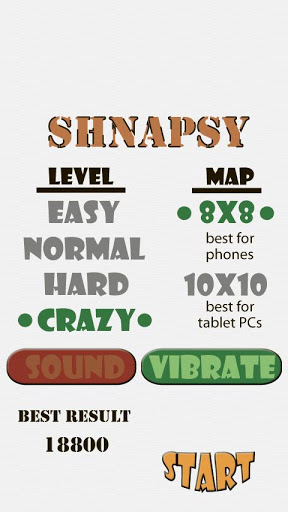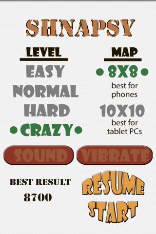 Four levels of difficulty in this game are available: easy, normal and hard - for those who prefer to think things through calmly, crazy - for those who believe in luck.