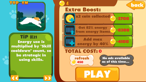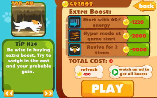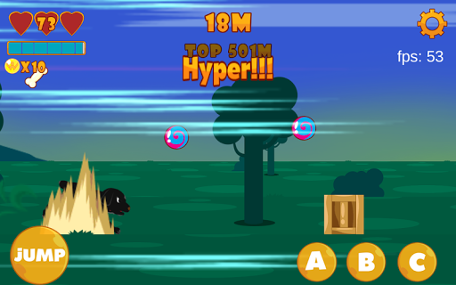 ใช้บนหน้าจอปุ่มเพื่อกระโดดและใช้ทักษะทักษะมีอิสระที่จะใช้ครั้งแรก แต่การใช้พลังงานความต้องการอย่างต่อเนื่องรวบรวมกระดูกเพื่อฟื้นฟูชีวิตและลูกอมเพื่อชาร์จพลังงานพลังงานเต็มหมายถึงสุนัขจะไปไฮเปอร์!โหมดไฮเปอร์ช่วยเพิ่มความเร็วและสามารถใช้ทักษะไม่ จำกัด โดยไม่ต้องกังวลเกี่ยวกับพลังงาน