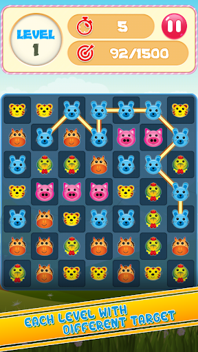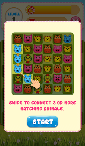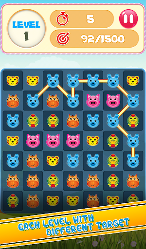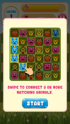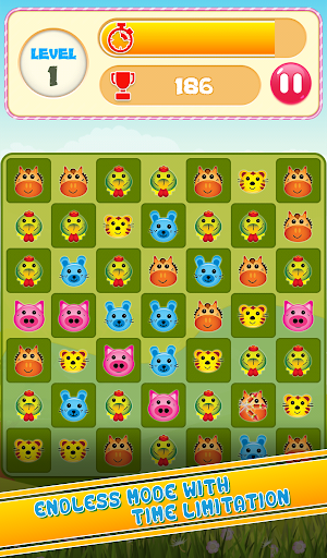 Swipe to connect three or more matching faces of animals and make them disappear.