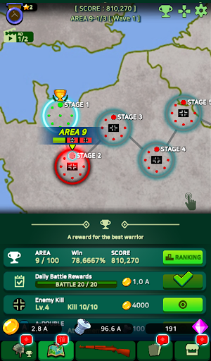 Join the Allied Forces as a volunteer in World War II and lead the battlefield to victory, advance through 100 regions and become a battlefield hero!