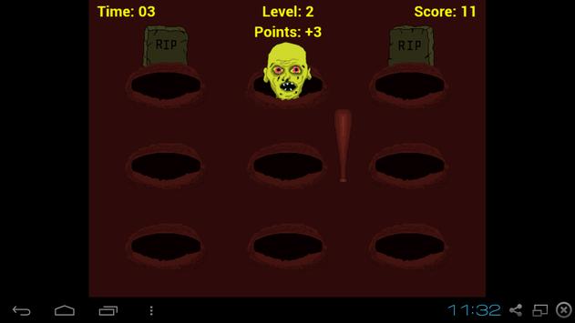 Whack that zombie as he rises from the grave. Very easy to play. See how good your co-ordination skills and reflexes are. What level can you reach. High score table included. Can be played on cell phone or tablet.