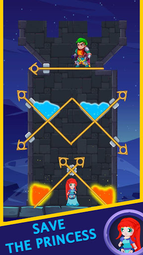 Start the first level and start having fun with pin pull puzzle game rescue hero and princess.