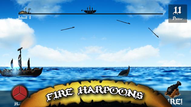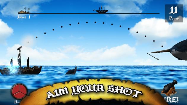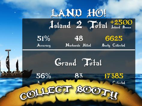The overall goal of this game is to hop from island to island, making sure you don't take too many hits from incoming Narwhals, collecting booty on the way. You get more booty based on how accurate you are with your harpoons, as well as how many narwhals you've killed in a row without missing (as well as an island bonus for surviving the round).