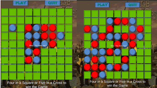 - 9x9 Board Game - 2 Players: Human plays against Computer. - Winner needs to achieve four in a square or five in a cross - Game using some audio clips and picture of Age Of Empires (AOE) game