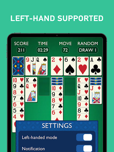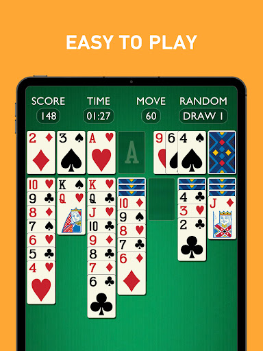 การควบคุมที่ใช้งานง่ายจะช่วยให้คุณมุ่งเน้นไปที่ความอดทน Solitaire คลาสสิกที่มีการ์ดขนาดใหญ่