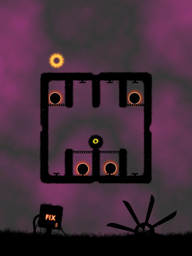 Press and hold the screen to draw a circle, the map will rotate, and the black ball will scroll with the direction of rotation. Pay attention to avoiding fireballs and sawtooth. Use the switch device to control the changes of the map elements. Use the pause device to stop the black ball from moving and rotate the map, effectively avoid obstacles, and finally reach the finish line to win the game.