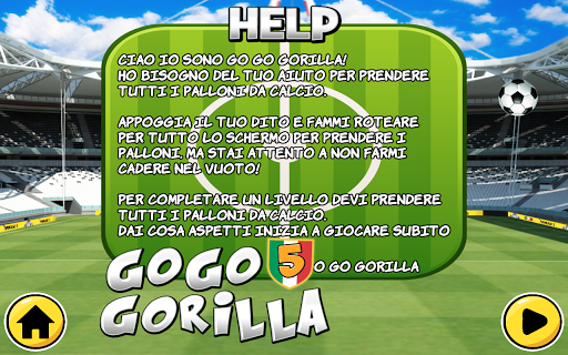 การเล่นเป็นเรื่องง่ายมาก: เพียงแค่วางนิ้วบนหน้าจอเพื่อทำลายกอริลลาม้วนทางขวาหรือซ้ายที่ความเร็วเต็มภายในสนามฟุตบอล 3D ที่ยอดเยี่ยมและพยายาม ไม่ตกอยู่ในสุญญากาศใช้ประโยชน์จากกฎหมายของฟิสิกส์และแรงโน้มถ่วง