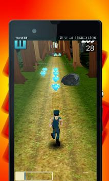 The explorer's ambition to save the relics from the government and discover its potential is extra-ordinary. Previously, he has saved another goddess treasure. He must make a packy run in order to save the relic and himself from the inspector. He must escape or he would be jailed in the prison for his ambitious adventures. He carries the burden of this relic; he must escape to enjoy the rest of his life on beaches eating fruits and candy. He must run day and night without getting tired and pass through the forest to the rendezvous where help is waiting for him to approach. Powered up with his gadgets like ghost card, magnets and camouflage ring. He must get away from the forest. He remains a rogue treasure thief instead of a hero that works for the government or for someone with power.