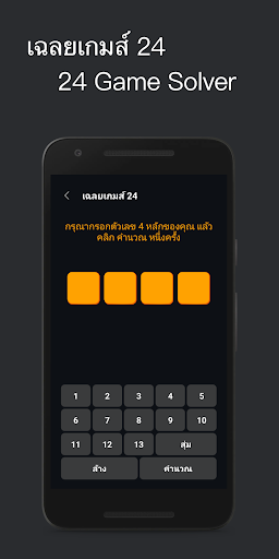 ป้อนตัวเลข 4 จำนวน จากนั้นกดปุ่ม คำนวณ สามารถระบุคำตอบในการคำนวณได้หลายรูปแบบนะ ~.