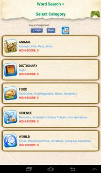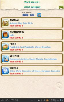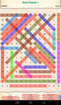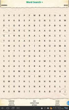 Word Search is a word puzzle game where the player has to find and strike words that are listed at the bottom of the screen in the puzzle. The words can be stricken out in the jumble horizontally, vertically and diagonally, both forward and backward. Word Search can be played in five categories