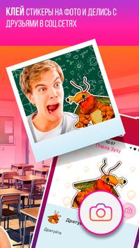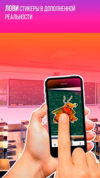 Собирай стикеры с мемами и блогерами в дополненной реальности. Наклеивай их на фото и отправляй друзьям!