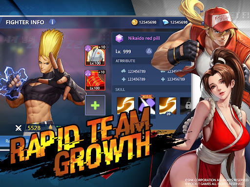 นักสู้ของ SNK พร้อมที่จะต่อสู้เพื่อคุณเปิดใช้งานพันธบัตรที่กำหนดไว้ล่วงหน้าและดูพลังของทีมของคุณพุ่งสูงขึ้น!