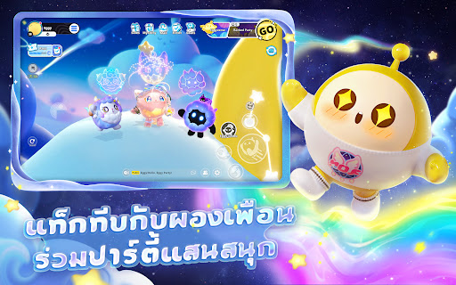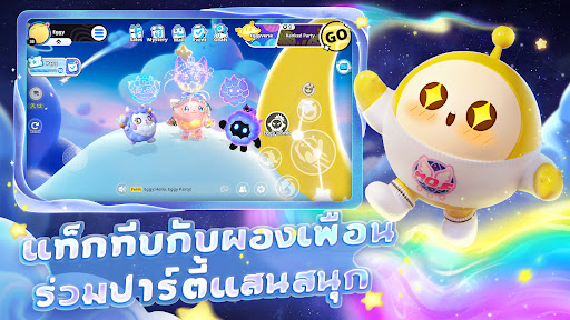 เข้าร่วมปาร์ตี้ทีมกับเพื่อน ๆ ปะทะเด้งดึ๋ง แนบชิดแสนสนุก! เวลาเที่ยวเล่นบน Eggy Island ต้องระวังกลไกต่าง ๆ บนสนามแข่งด้วยนะ บางครั้งก็ต้องระวังไข่น้อยตัวอื่น ๆ ด้วย! บอกเลยว่าปาร์ตี้นี้มันส์แน่ ติดใจสนุกได้ทั้งวัน!