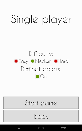 Single player : play against the CPU on one of 3 difficulty levels. Decide, whether you allow the colors in the code to repeat.