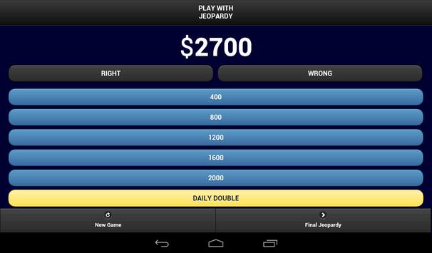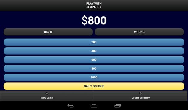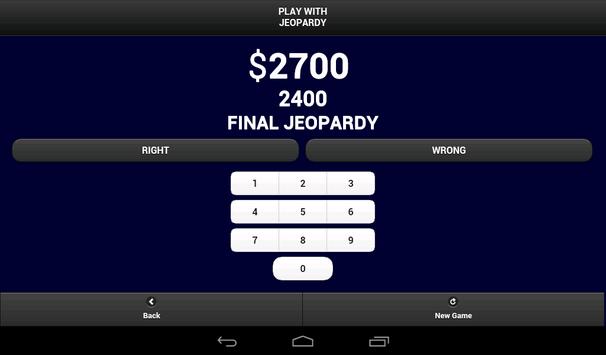 It's time to "Play with JEOPARDY!" As you watch TV's best game show you can now keep score and see how you stack up with the contestants. Use the Play with Jeopardy APP to calculate your score as you watch along. Play with Jeopardy offers an interface that is simple and follows the game shows format. Now everyone has a chance to play with the contestants and you can say I played JEOPARDY!