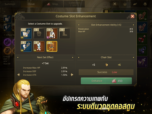 - ระบบ Single PvP แบบ 1:1 ตัดสินการต่อสู้แบบเรียลไทม์บนสังเวียนการประลองเพื่อชัยชนะ!