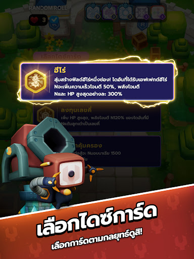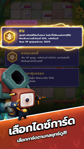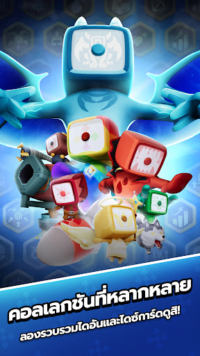 เลือกไดซ์การ์ดอย่างมีกลยุทธ์เพื่อคว้าชัยชนะที่สมบูรณ์แบบ หรือพลิกเกมอย่างน่าตื่นเต้น! เลือกการ์ดที่เหมาะกับสถานการณ์ในสนามรบปัจจุบันจากไดซ์การ์ดที่มากกว่า 40 แบบ เพื่อประสานกำลังกัน! เมื่อระดับเพิ่มขึ้นประเภทของไดซ์การ์ดก็จะมีความหลากหลายมากขึ้น