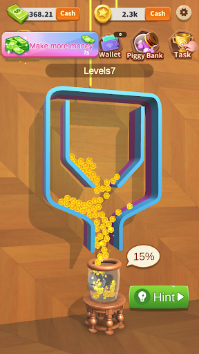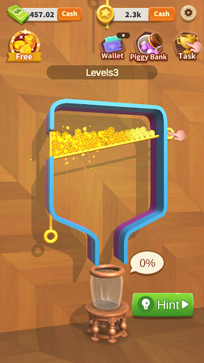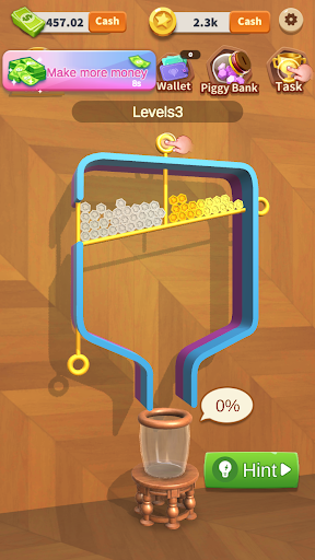 You should pull the right pin to make gold coins crash grey coins.
