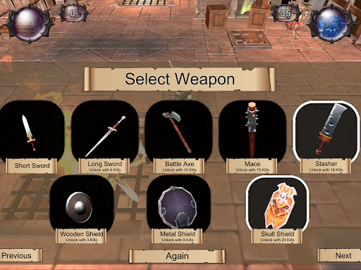 - 5 Weapons – Short Sword, Long Sword, Battle Ax, Mace, Slasher