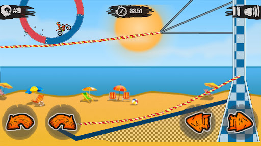Don't worry about crashing - you can always start from the latest checkpoint, but you lose valuable seconds. So try to complete each track in one go to win all 3 stars at the end of a level. Unlock cool new bikes, put on some swimwear and join the pool party fun!