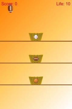 Separate basketball, baseball and football into baskets. Don’t miss a ball. Have fun!