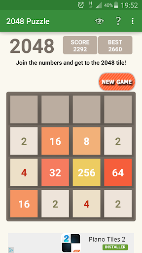Ce jeu est un 2048 Puzzle game numbers amusant et simple. Trouvez le tuile 2048