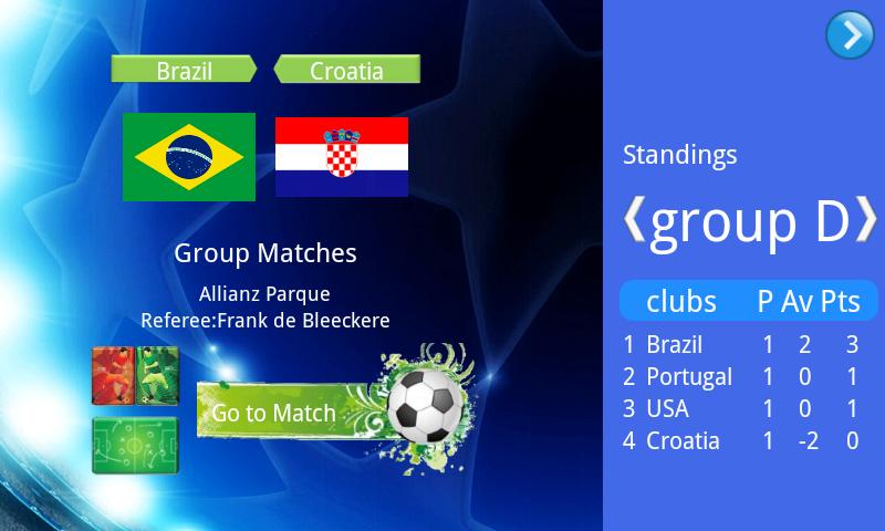 ★ One of the best football tournament of the world! ★ Choose your favourite team and begin to manage. ★ Do whatever you can to attend the final. ★ The most famous 16 teams. ★ Great musics and themes.