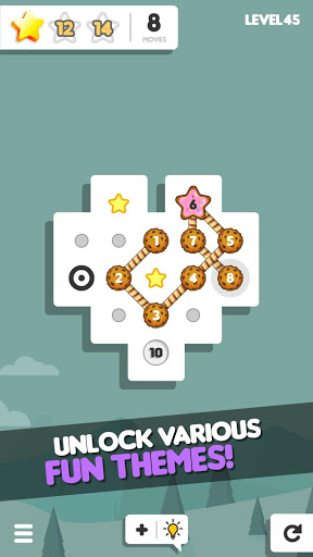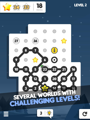 Play freely hundred levels, beginning with the easiest to the most challenging. Each level has several ways to be solved, use your logical reasoning and try to collect all the stars of each world!