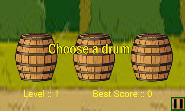 If you find out the correct drum, then you will go to the next level. If not,then you can try again.clear the levels and get the high score as much you can.it's an unlimited level game.