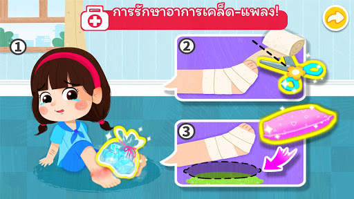 เบบี้แพนด้ายังมีเคล็ดลับการปฐมพยาบาลเมื่อเกิดอุบัติเหตุ เช่น น้ำร้อนลวก ผึ้งต่อย และแมลงเข้าตาด้วยนะ