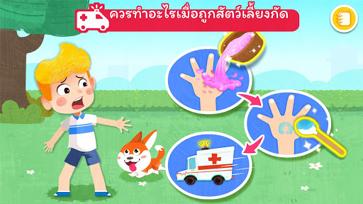 ในกรณีที่ถูกสัตว์เลี้ยงกัด ให้ตัดสบู่เป็นชิ้นเล็ก ๆ ซักหน่อยและใส่ลงในน้ำ ทำน้ำสบู่และใช้ทำความสะอาดแผล นำสำลีก้านจุ่มลงในน้ำยาฆ่าเชื้อโรคและทาลงบนแผล เด็ก ๆ จ๊ะ ถ้าถูกสัตว์เลี้ยงกัด ให้เรียกบริการแพทย์ฉุกเฉินและไปรับการรักษาที่โรงพยาบาล!