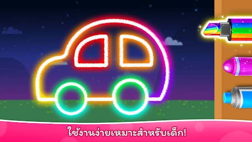 เกมวาดเส้นของเราเล่นง่ายมาก! ในการระบายสี เด็กๆเพียงแค่แตะหน้าจอไม่กี่ครั้ง! เด็กๆจะสนุกไปกับการวาดเส้นเรืองแสงและระบายสีตามลายเส้นอย่างแน่นอน!