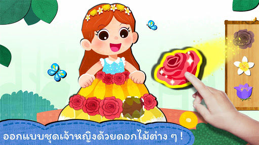 ก่อนอื่นให้ไปที่สวนเพื่อเลือกดอกกุหลาบและดอกมะลิ เด็ดกลีบดอกไม้และติดลงบนขอบชุดเจ้าหญิง ชุดเจ้าหญิงพร้อมแล้ว! นอกจากชุดแล้วคุณยังสามารถจับคู่ดอกไม้สีแตกต่างกันและออกแบบพวงมาลาสวมศีรษะให้เจ้าหญิงได้ด้วยนะ! ดูสิชุดและของสวมศีรษะที่คุณออกแบบนั้นสวยมาก ๆ เลย!