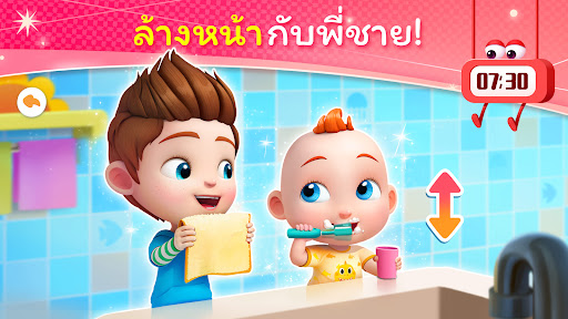 เช้าแล้ว! ทั้งพี่ชายและน้องสาวเริ่มแปรงฟันกันแล้ว ถึงตาคุณแล้วที่จะสอน JoJo เกี่ยวกับวิธีแปรงฟันและล้างหน้า เมื่อทุกอย่างเรียบร้อย ก็ได้เวลาสุดพิเศษกับครอบครัวของ JoJo แล้วล่ะ!